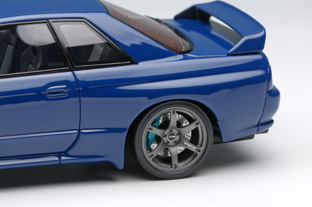 BUILT BY LEGENDS Mine's Skyline GT-R(BNR32)の場合は、NACAダクト付きのドライカーボン製ボンネットが新規造形データとなります。また実車同様に角型ハロゲン2灯の通称N1ヘッドライト、さらには軽量かつ高剛性な18インチのRAYS製TE037ホイールをセットしています。