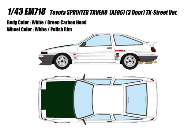 | 製品名: | アイドロン EM718 トヨタ スプリンタートレノ (AE86) (3 Door) Tk-Street Ver. ホワイト (グリーンカーボンフード) |