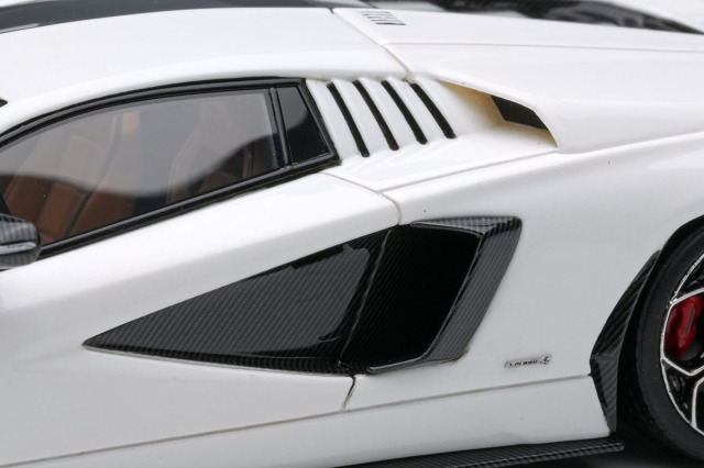 ボディ形状は、シアンFKP37などに比べるとシンプルではありますが、初代カウンタックのNACAダクトをモチーフとしたサイドのインテークは当該部位をボディと別成型することで、実車さながらの深い掘り込みを再現しています。