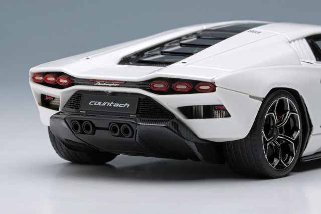 同じく初代カウンタックのそれを彷彿とさせる外形のテールライトハウジングの掘り込みの深さの再現も注目していただきたいポイントとなります。灯火類も実車のパーツ構成を分析して、それに倣ったパーツ構成を採ることで実車さながらの表情を演出しました。