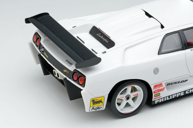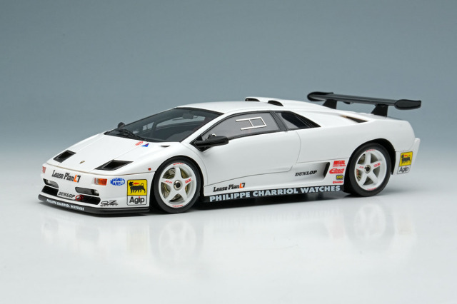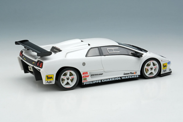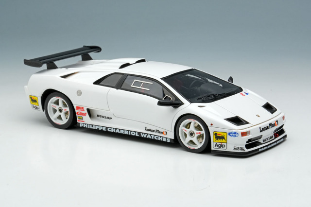 ランボルギーニ ディアブロSVをベースに軽量化などを施された「ランボルギーニ ディアブロ SVR」を忠実に再現したモデルです。今回のモデルはプロモーション時に貼られていたワンメイクレースのスポンサーロゴを追加した仕様になります。