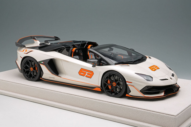 ランボルギーニの高性能限定モデルとして発売された「アヴェンタドール SVJ ロードスター」の特別仕様として発売された「アヴェンタドール SVJ 63 ロードスター」を忠実に再現したモデルになります。