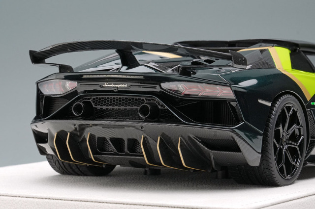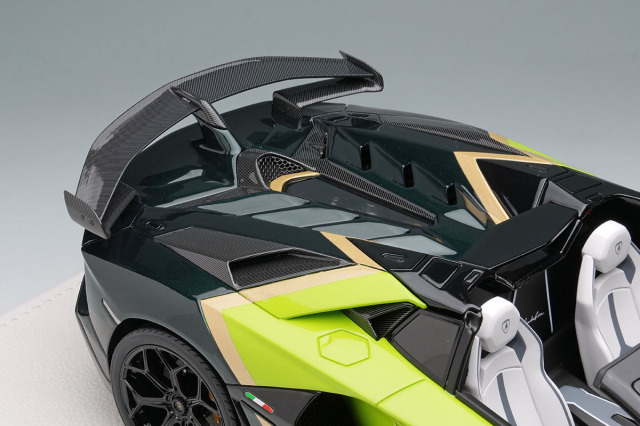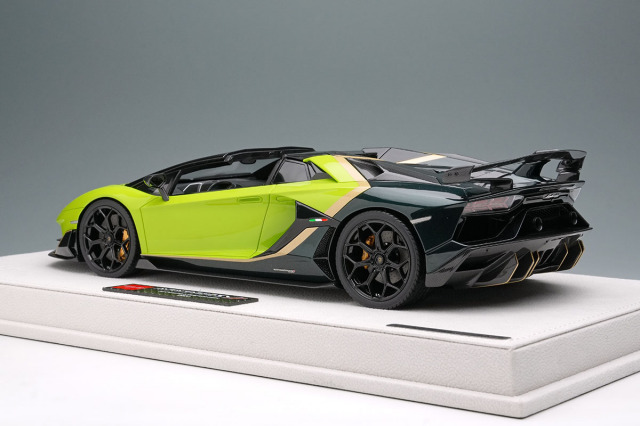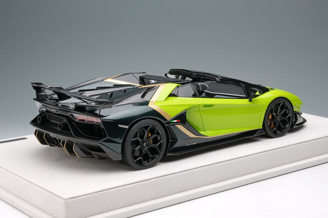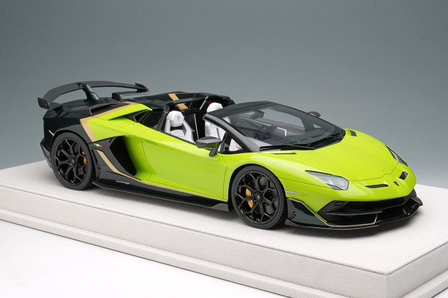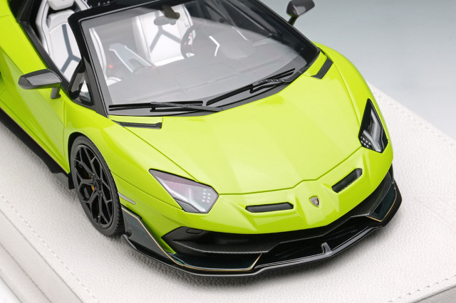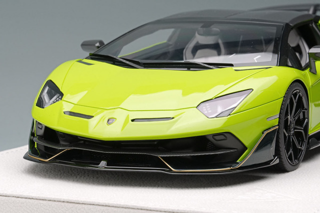 ランボルギーニのフラッグシップモデル「アヴェンタドール SVJ ロードスター」をランボルギーニのパーソナライズサービス「アドペルソナム」を使い2トーンに仕上げた「アヴェンタドール SVJ ロードスター アドペルソナム 2トーンペイント」を忠実に再現したモデルになります。