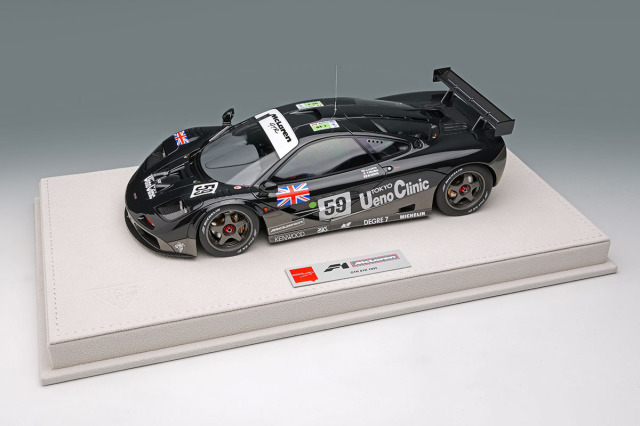 マクラーレン・カーズのロードカー第1作のF1をベースに改造され、1995年のル・マン24時間レースで総合優勝した「F1 GTR 01R」を忠実に再現したモデルとなります。