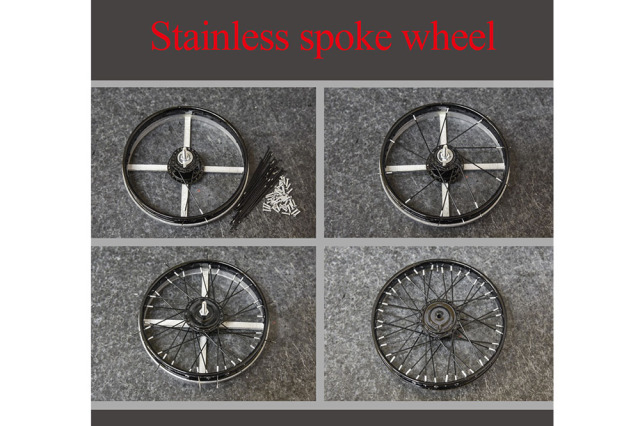 ■ホイールは、メタルリムに加工済みステンレススポーク、ステンレスパイプを組み合わせる構成でリアルに再現。