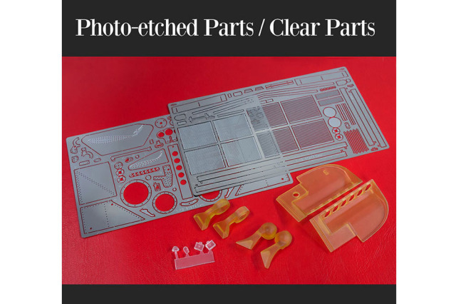 ■ホイールリム・エンジンファンネル・ホイールシャフト/ロックナット・マフラーエンド・テールランプ台座、フロントダンパートップの各パーツは金属挽き物製で質感高く再現できます。